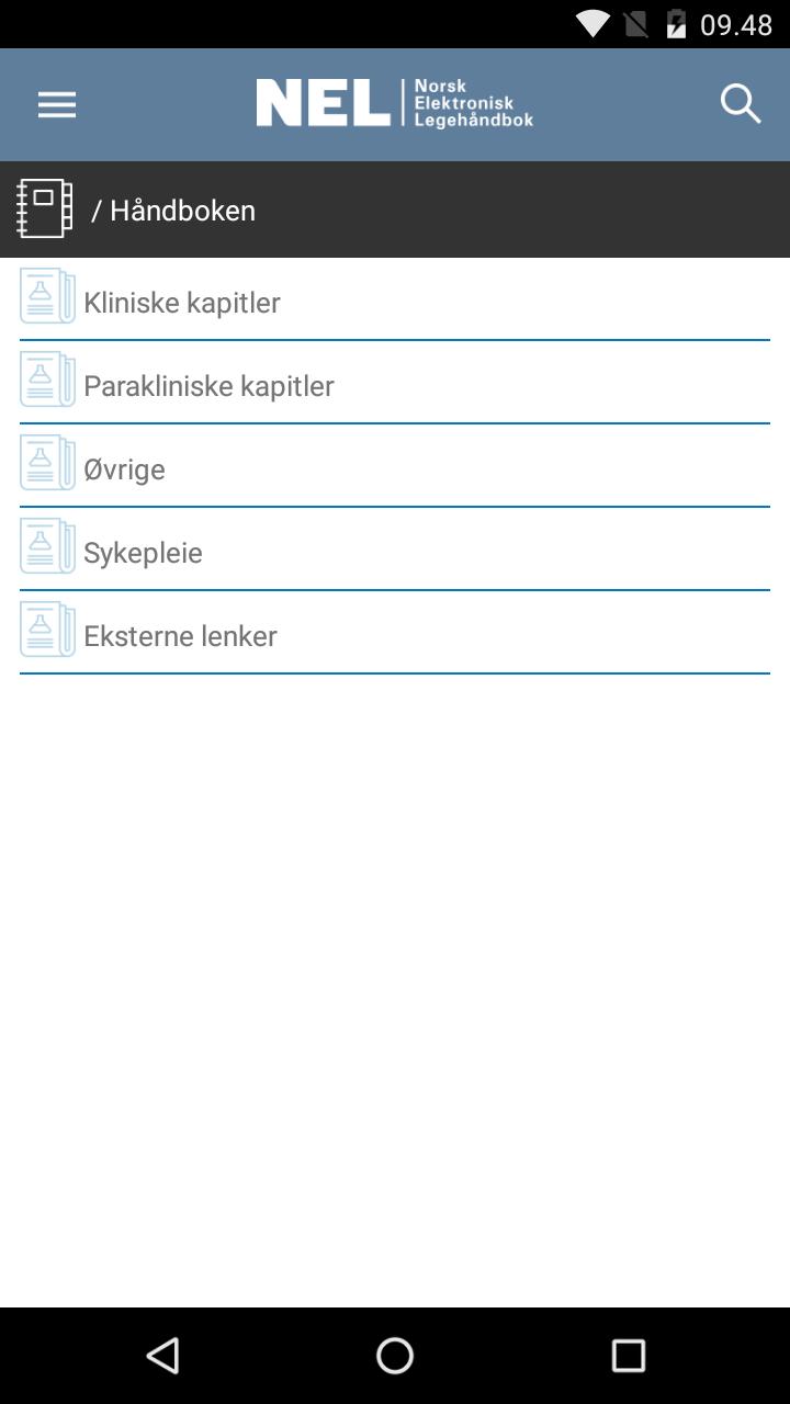 NEL (Manual NEL Elektronik Norwegia) adalah referensi Skandinavia yang paling banyak digunakan untuk Helsepero NEL L. Akses ke aplikasi membutuhkan nama pengguna dan kata sandi yang valid.